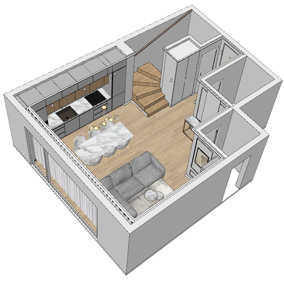 Podczas kursu nauczysz się, jak zamieniać wszystkie rysunki 2D na trójwymiarowe modele. Stworzysz otwory okienne i drzwiowe, a także zaimportujesz meble z biblioteki 3D Warehouse. Nauczysz się dbać o uporządkowanie modelu za pomocą warstw, grup i komponentów.