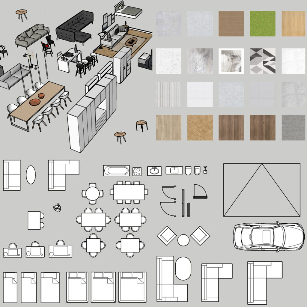Otrzymasz gotowe sceny z projektem wnętrz, mebli, budynku i ogrodu, które możesz wykorzystać przy swoich projektach. Dodatkowo otrzymujesz tekstury i materiały do pobrania