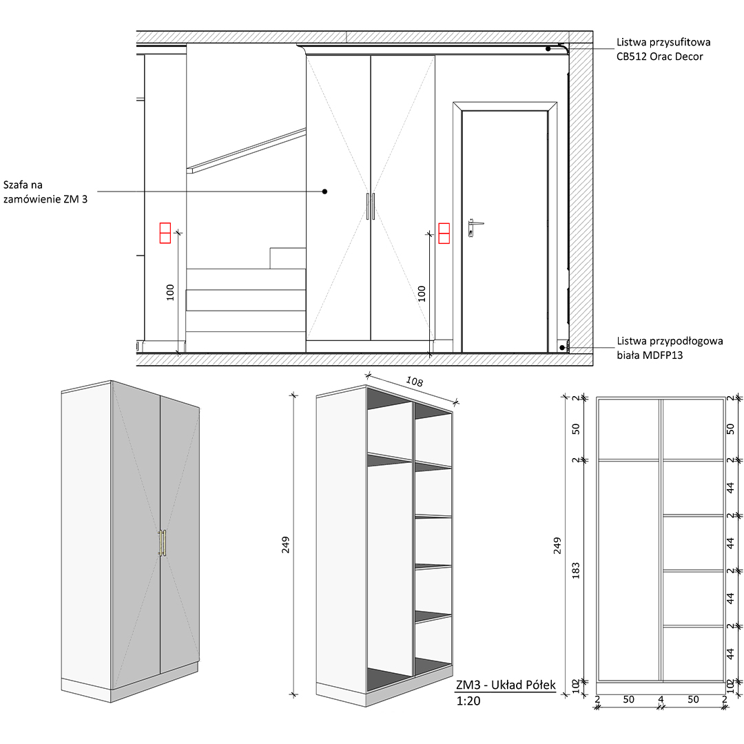 To pozwoli w pełni pokazać wszystkie wymiary i opisać użyte materiały w zabudowie meblowej
