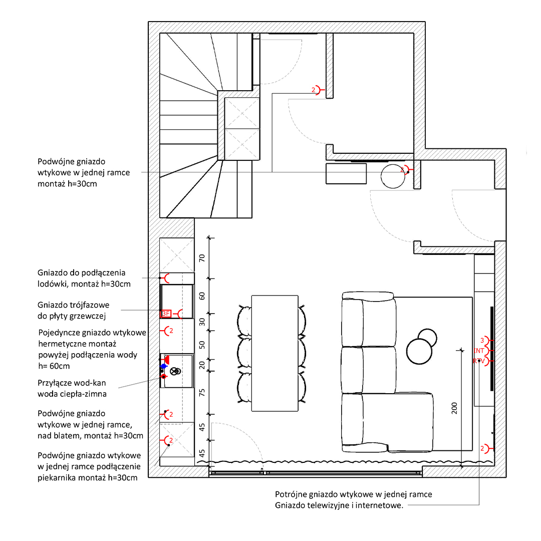 7.8 Narysowanie i ustawienie symboli gniazdek. Wymiarowanie i podpisy