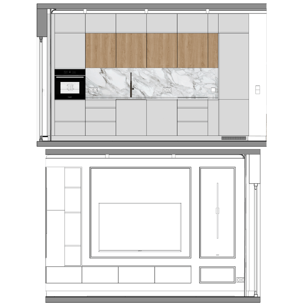 11.2 Meble przy TV. Wymiary i perspektywa. Podpisy i wymiarowanie. Widok C-C