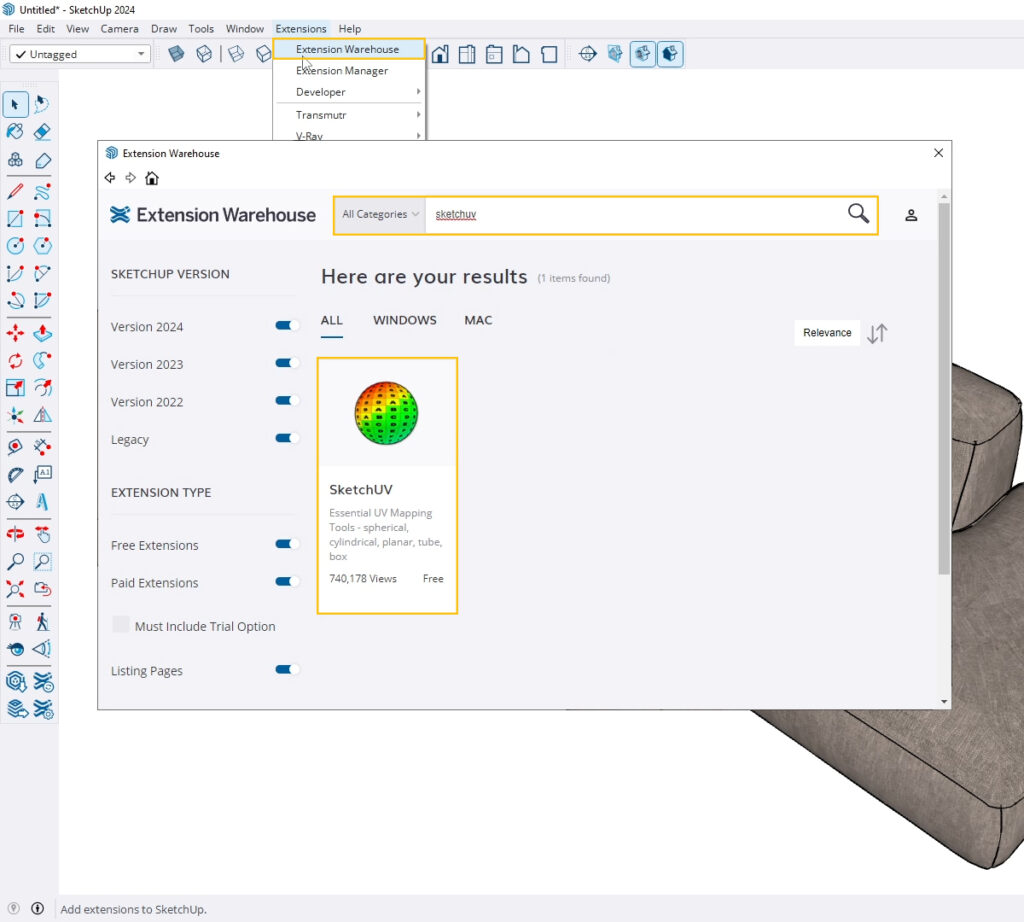 - Wyszukaj i Zainstaluj: Wyszukaj wtyczkę SketchUV i zainstaluj ją za darmo.